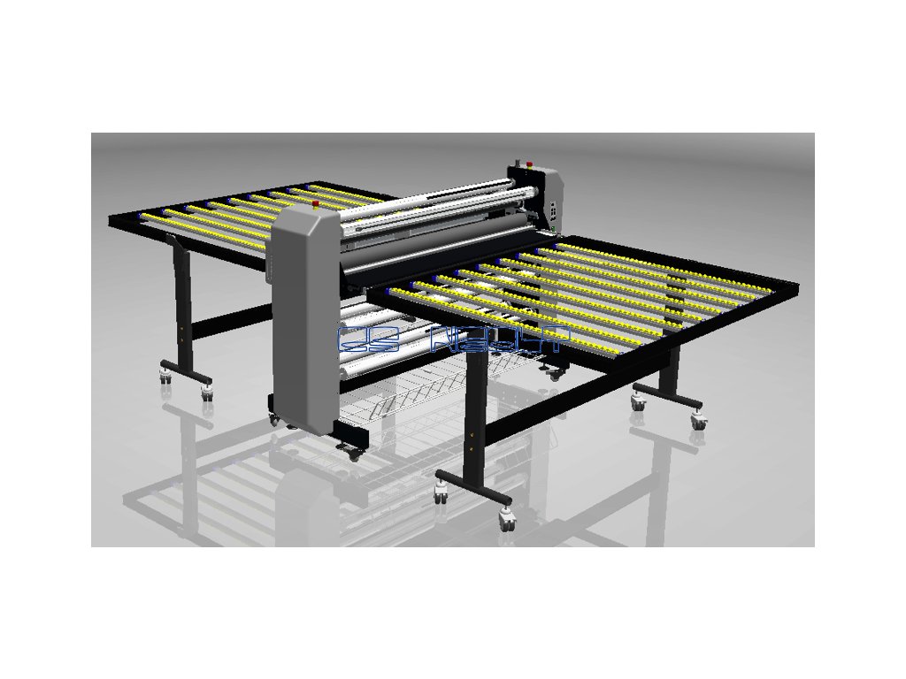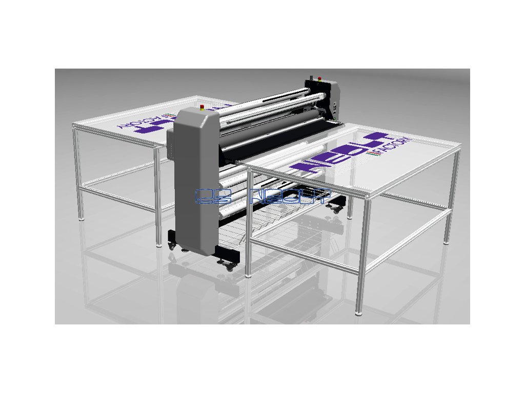 Je vybavena pracovním stolem s podsvícením, dvojitým motorizovaným válečkem, automatickým rotačním řezacím systémem a může být doplněn podsvícenými stoly odolnými proti poškrábání, zásuvkami pro nástroje a nádobou pro sběr odpadu/média. Vstupní a výstupní stoly jsou standardní velikosti, ale můžete si objednat další skládací stoly pro zvětšení vašeho pracovního prostoru. Laminovací válečky jsou také potaženy speciálním typem silikonu, který usnadňuje přilnavost laminovací fólie k materiálu.